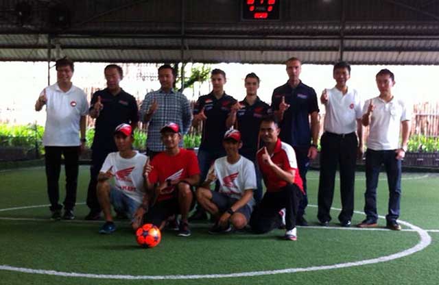 Sedang untuk pagi ini tampak Dani Pedrosa pun sudah hadir. Kedua pembalap tim Repsol Honda akan beradu bermain Futsal bersama Tim AHRT di lapangan Kuningan Village Futsal, Setiabudi, Jakarta Selatan.