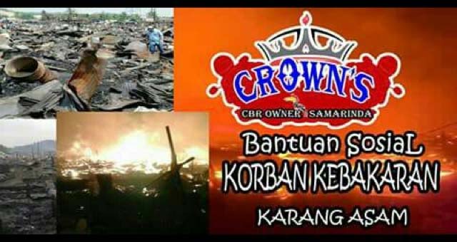 Dengan kejadian ini, komunitas CBR Owner Samarinda (CROWN'S) tergerak untuk meringankan beban korban kebakaran melalui penggalangan dana dari member maupun masyarakat umum. Sejumlah dana yang telah dihimpun dibelikan panganan untuk dibagikan kepada masyarakat yang membutuhkan.