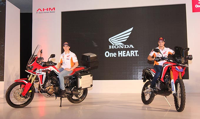Jakarta – Bertepatan dengan kedatangan Marc Marquez dan Dani Pedrosa ke Indonesia beberapa waktu lalu, PT Astra Honda Motor (AHM) memperkenalkan Honda CRF1000L Africa Twin dan Honda CRF25RALLY, yang memiliki DNA Rally Dakar. Hal ini sekaligus mengukuhkan AHM memasuki pasar motor adventure tourer.