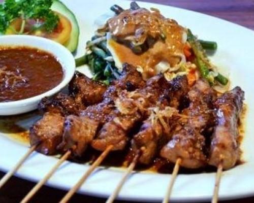 Sate yang di baluri oleh saus kacang kasar yang rasanya manis dan kental ini lezat sekali.