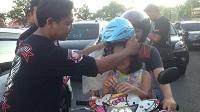 3. Berbagi helm kepada anak-anak yang belum memiliki helm.