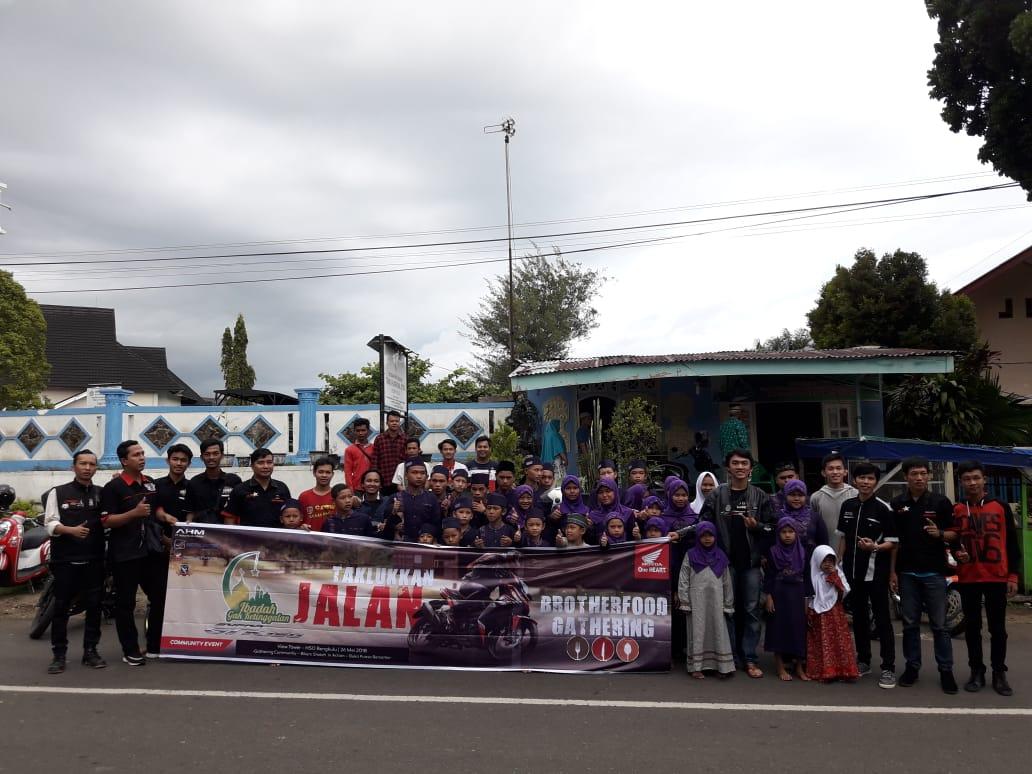 Bengkulu – Menyambut Bulan Ramadhan di Tahun 2018, Komunitas All New Honda Supra GTR 150 mengadakan Brotherfood Gathering. Kegiatan ini dilakukan oleh Honda dan teman-teman Paguyuban Motor Honda Bengkulu untuk melakukan kegiatan yang berdampak positif pada Bulan Suci Ramadhan. Sebanyak 80 bikers All New Honda Supra GTR yang mempunyai Tagline Taklukkan Jalan ini member sumbangan untuk anak yatim yang ada Yatim Piatu Tunas Harapan Jitra. Acara yang dilaksanakan pada Sabtu 26 Mei 2018 disambut meriah dengan antusias bikers dalam membagikan takjil untuk masyarakat Bengkulu yang sedang menunggu adzan maghrib pada acara Brotherfood Gathering ini.