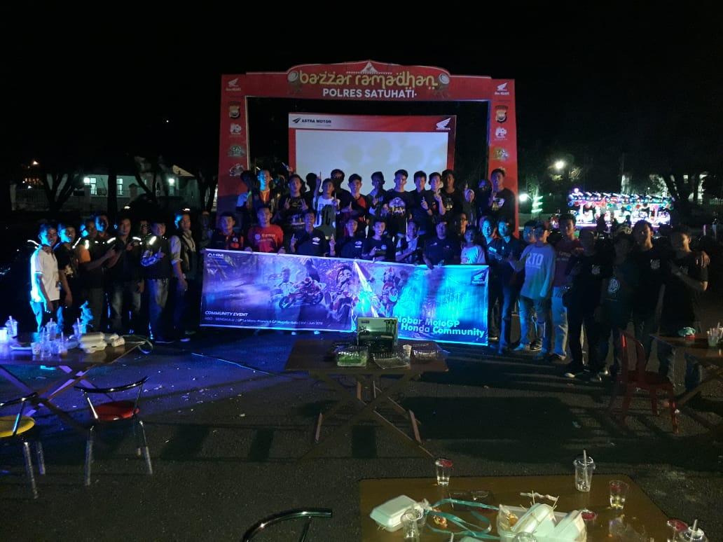 Bengkulu- Minggu malam, tepatnya pukul 7 malam merupakan waktu dimana Moto GP Catalunya dimulai. Disaat yang sama, anggota komunitas Honda CBR250RR telah memenuhi View Tower Kota Bengkulu untuk Nonton Bareng (Nobar) Moto GP Sirkuit Catalunya. Tak hanya menonton Moto GP, aktivitas komunitas kali ini disertai dengan Buka Bersama yang diikuti oleh lebih dari 120 bikers Honda. Salah satu anggota komunitas Honda CBR250RR mengatakan bahwa kegiatan ini merupakan salah satu sarana yang mampu memupuk solidaritas dan silahturahmi sesama anggota komunitas. Oleh karena itu, kesan persaudaraan dan kebersamaan menjadi aspek dominan yang dirasakan oleh anggota komunitas.