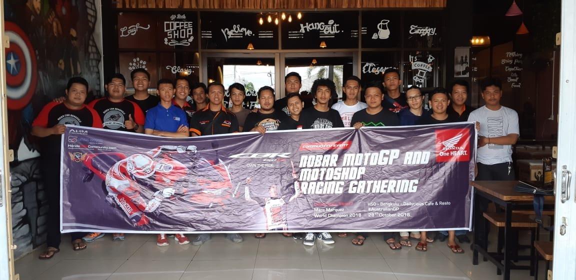 Minggu 28 Oktober 2018 Honda Bengkulu kembali mengadakan nobar moto gp dan gathering bersama komunitas motor sport yang ada di bawah naungan Paguyuban Motor Honda Bengkulu. Nobar ini juga bertepatan pada hari Sumpah Pemuda yang mana hari sumpah pemuda itu untuk menjunjung tinggi dan menjaga kedaulatan Republik Indonesia melalui pemuda-pemudi Indonesia.