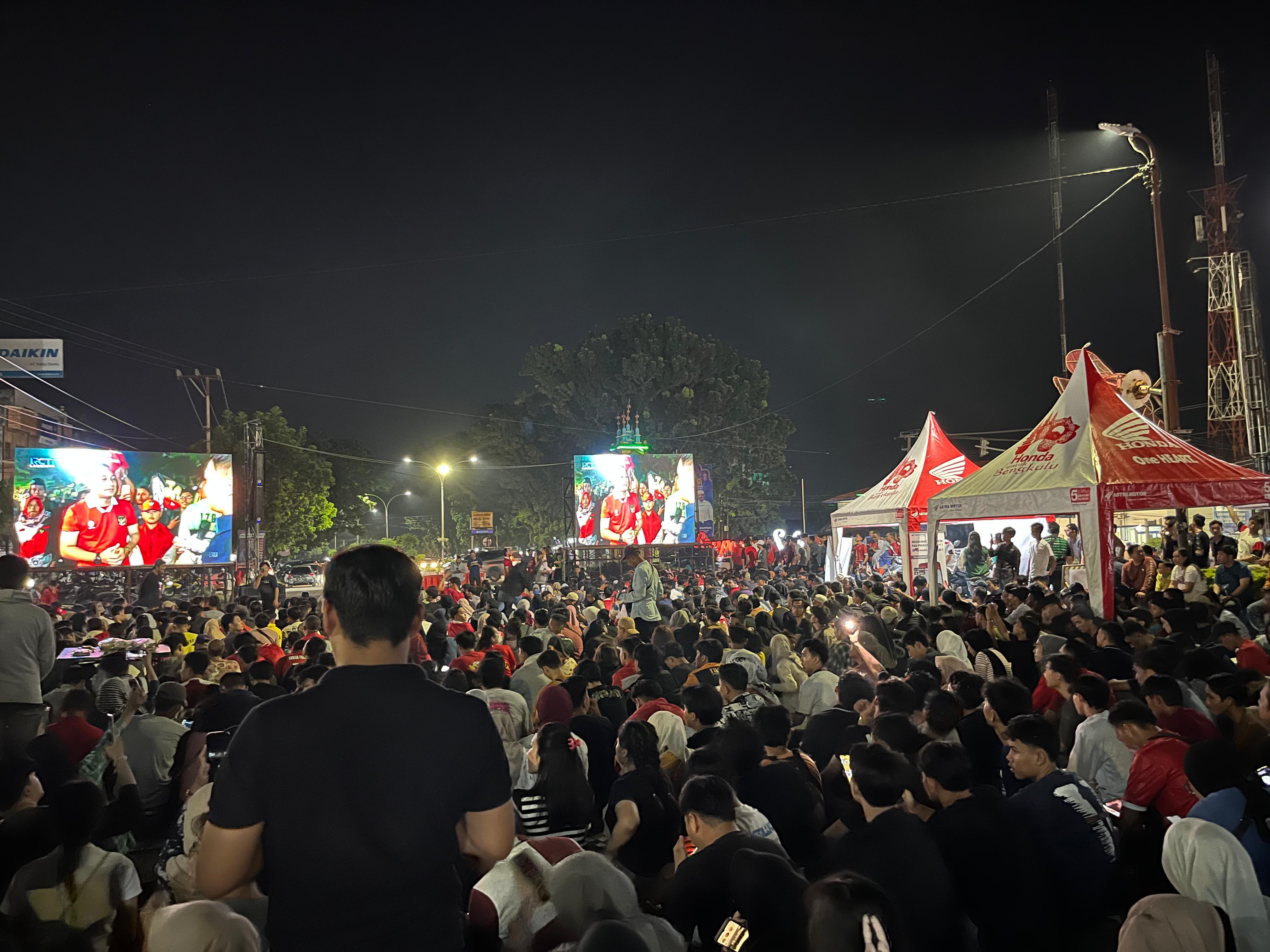 Bengkulu, - Acara nonton bareng (Nobar) yang digelar tadi malam oleh Astra Motor Bengkulu di (Simpang Skip) Kota Bengkulu Pecah. Ratusan pasukan garuda Bengkulu tumpah ruah memenuhi jalanan di halaman depan Graha Pena Bengkulu Ekspress guna ingin menyaksikan Timnas Indonesia U-23 menghadapi Timnas Uzbekistan U-23 pada pertandingan semifinal Piala Asia U-23 2024 di Stadion Abdullah bin Khalifa, Doha, Senin 29 April 2024 Pukul 21.00 WIB.