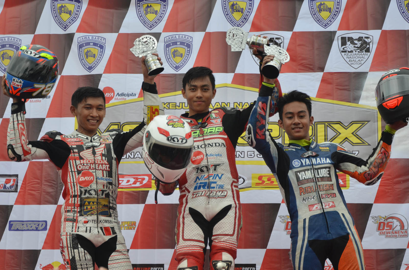 Kawan-kawan.... Pebalap binaan PT Daya Adicipta Motora (DAM) selaku distributor utama sepeda motor dan suku cadang Honda di Jawa Barat telah menunjukan kerja kerasnya di tengah kondisi lintasan basah sepanjang gelaran Kejuaraan Nasional (Kejurnas) MotorPrix Region 2 yang berlangsung di Sirkuit Bukit Peusar, Tasikmalaya pada 30 Juli 2017.