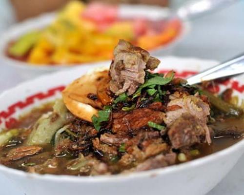Makanan ini merupakan perpaduan antara dua kuliner berbeda, yaitu Rujak dan Soto. Semangkuk Rujak Soto terdiri dari aneka sayuran, lontong, tahu, tempe yang dicampur bumbu kacang, kemudian disiram dengan kuah soto berisikan kulit sapi atau babat. Perpaduan dua kuliner ini menghasilkan cita rasa yang khas dan unik.
