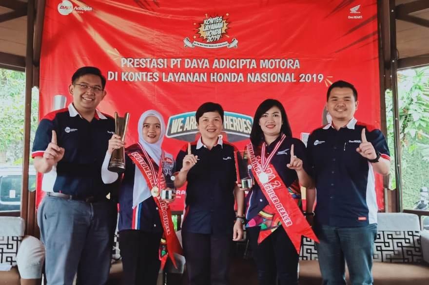 Kawan-kawan... Dua perwakilan PT Daya Adicipta Motora (DAM) berhasil mencatatkan prestasi terbaiknya pada ajang Kontes Layanan Honda Nasional (KLHN) 2019. Pada kategori Customer Retention Officer, juara pertama berhasil diraih oleh Deby Oktaviani dari dealer Bintang Motor Jaya – Cirebon, sedangkan Yorina Sanjaya dari AHASS Cahaya Sakti Motor - Karawang menjadi juara kedua pada kategori Pimpinan Jaringan Dealer Reguler.