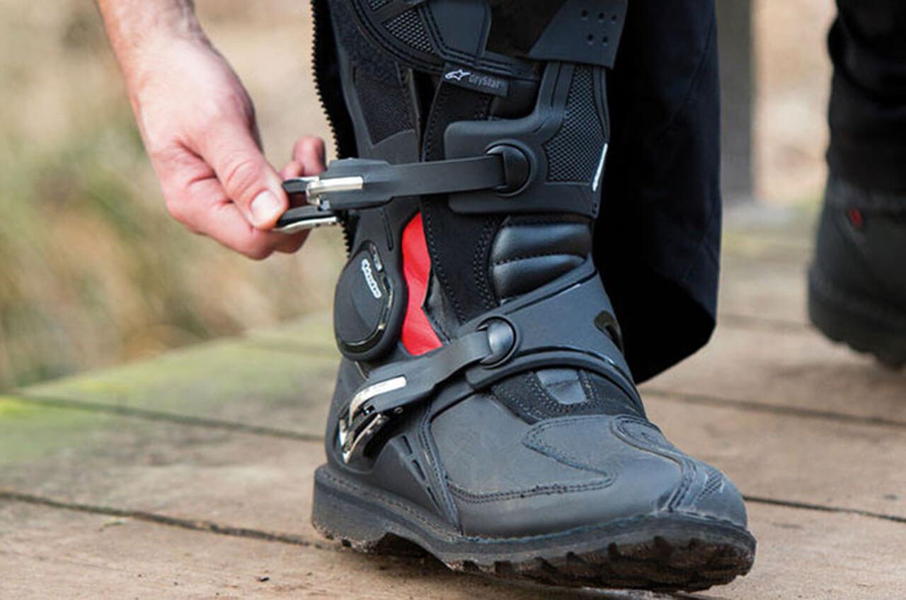 Sepatu jenis ini mampu memberikan perlindungan yang baik terhadap medan-medan tersebut. Sepatu jenis ini juga dibuat tidak sekaku sepatu untuk trail atau motocross.