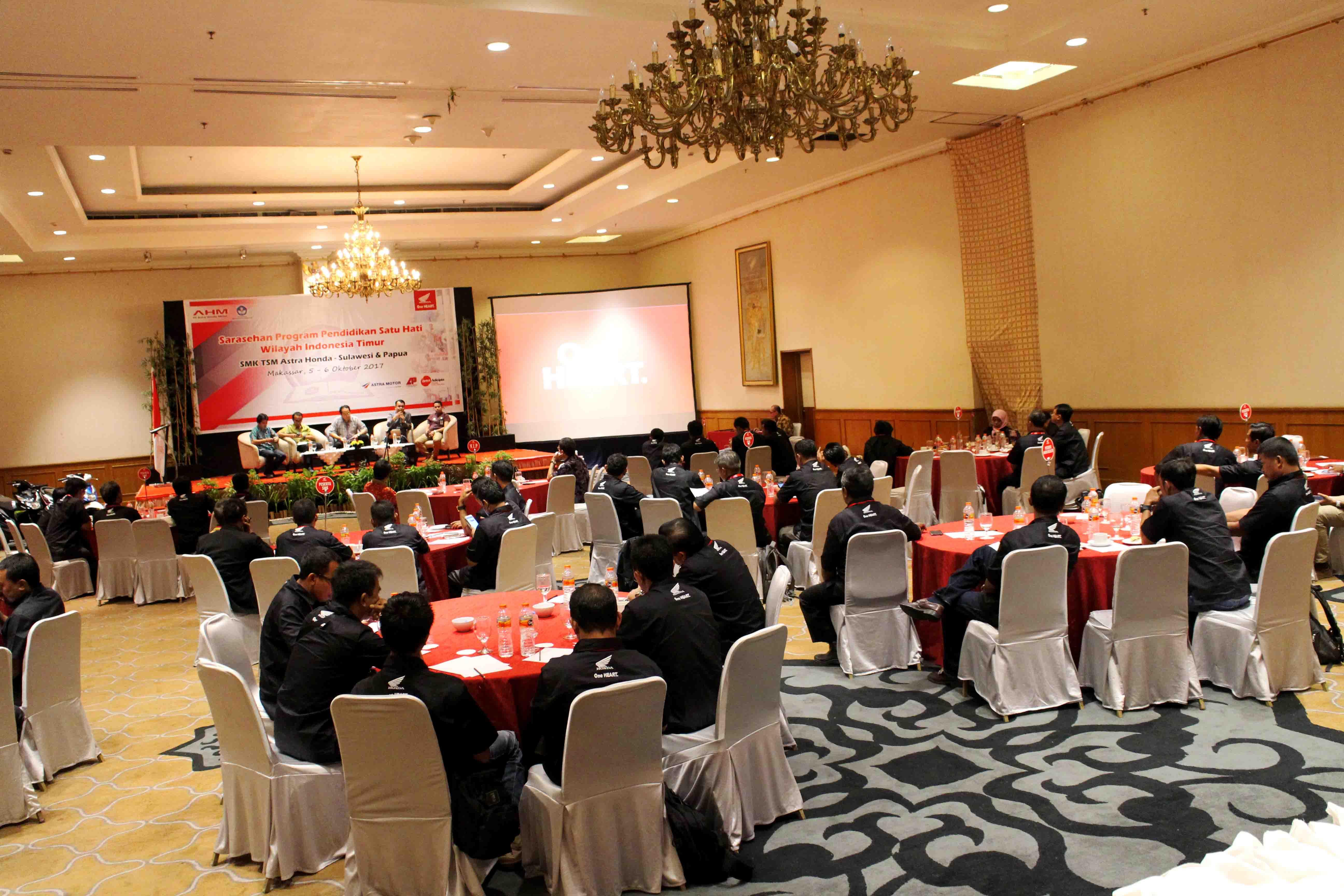Bertajuk Sarasehan Program Pendidikan Satu Hati, acara yang berlangsung di Makassar pada 5-6 Oktober 2017 ini diikuti para pemangku kepentingan yang terkait dengan SMK Teknik Sepeda Motor, mulai dari Direktorat Pembinaan SMK - Kementerian Pendidikan dan Kebudayaan (Kemendikbud), jaringan Main Dealer Honda, hingga Kepala Sekolah dan Kepala Program Studi SMK mitra binaan AHM se-Sulawesi dan Papua.