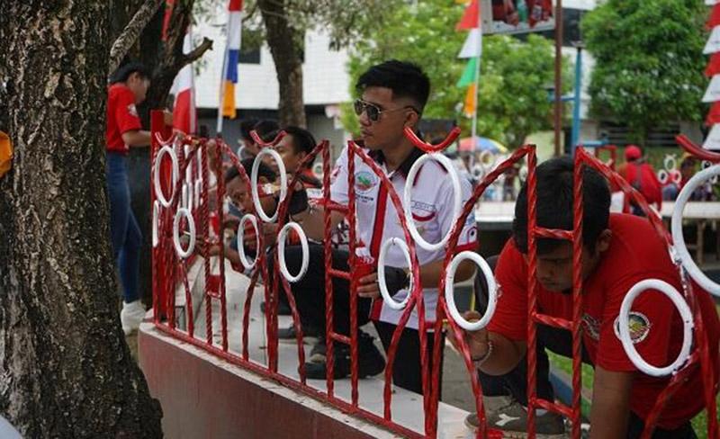 Pagar Taman IMBI kota Jayapura yang juga sebagai salah satu ikon kota, dipugar dengan cara dicat ulang.