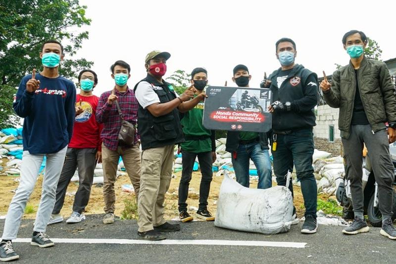 Rombongan berhenti sejenak untuk melakukan kegiatan Honda Community Social Responsibility (HCSR) dengan memberikan bantuan sekam yang dikemas dalam karung untuk tikungan Cangar sebagai bagian dari kepedulian komunitas Honda akan pengguna jalan yang lain.