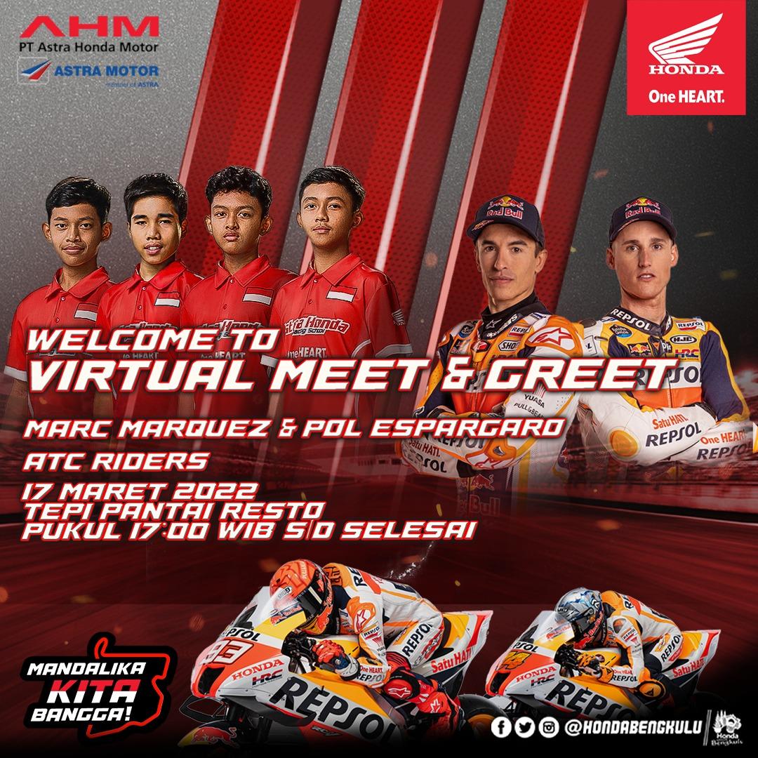 “Ada dua agenda yang akan dilakukan pada hari ini kamis 17 maret yaitu "Virtual Meet & Great Bersama Marc Marquez & Pol Espargaro" dan pada hari minggu mendatang, juga dilakukan Nobar Moto GP yang akan dilaksanakan di Tepi Pantai Resto, Pantai Panjang Bengkulu,”ujar Bro Gandrung.