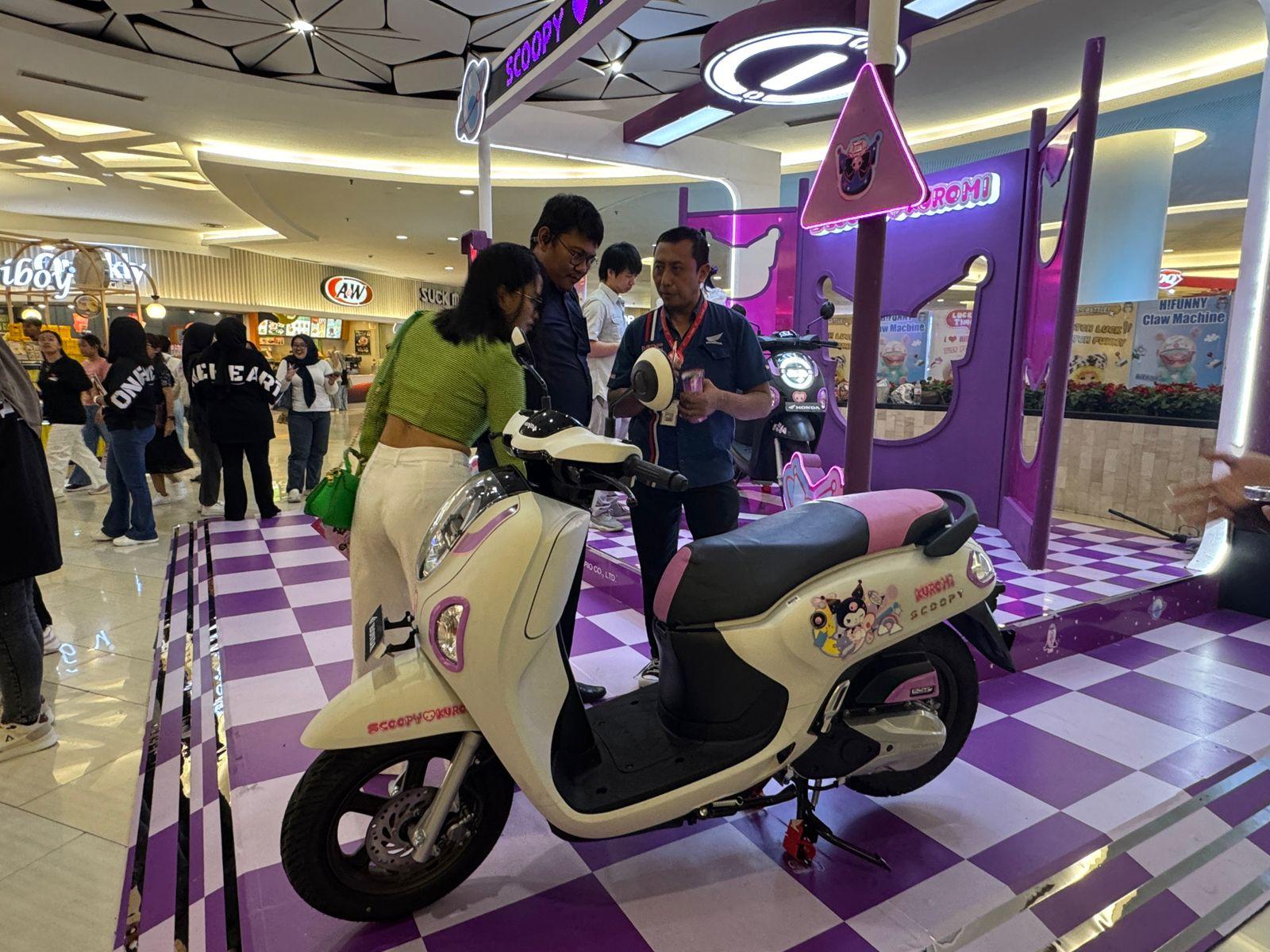 Banyak pengunjung yang memanfaatkan kesempatan untuk berfoto di area photo booth bertema Kuromi serta mencoba langsung duduk di atas unit Scoopy Kuromi Limited Edition yang tampil mencuri perhatian dengan nuansa ungu dan detail aksesoris eksklusifnya.